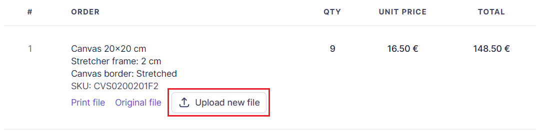 If a customer provides their own image and you need to replace the original print file with custom artwork, simply follow the same upload steps, as long as the production has not yet started.