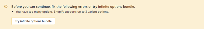 Shopify supports up to 3 variant options. If you need more options, choose the Infinite Options Bundle.