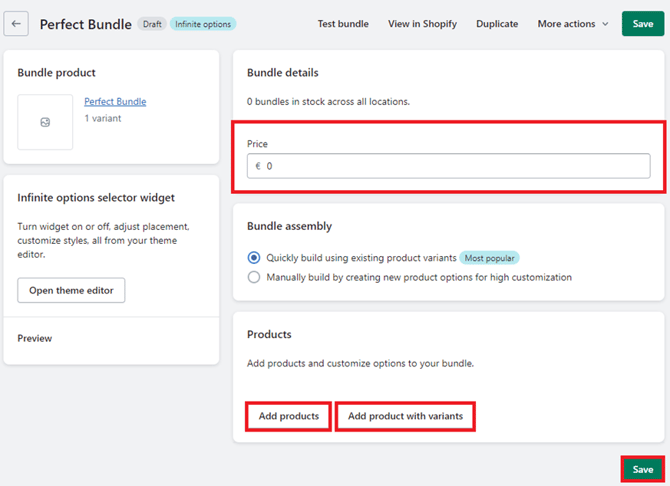 - Create your Perfect Bundle: Set the price, add products, and save the bundle.